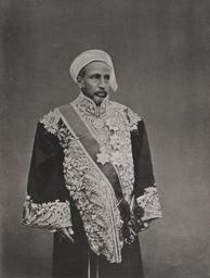 | Keywords: Awn al-Rafiq 1885.png en This three-quarter length standing portrait shows Aun al-Rafīq Pasha who was the Grand Sharīf of Mecca 1882 1905 He faces right He wears a turban and ceremonial robe embroidered richly with flower and foliage motifs as well as a sash held together at the waist There are six elaborate stelliform and circular badges on the centre and the left of his robe The negative has had hand-work applied causing the image to take on a soft-shaded paint-like quality In particular the original background has been substituted while the lower right corner appears to have been etched in the negative A circular 'British Museum' blind stamp is located in the lower right corner ar صورة رأسية ثلاثية الأرباع، تعرض عون الرفيق باشا، شريف مكة ١٨٨٢ ١٩٠٥ ينظر ناحية اليمين ويرتدي عمامة ورداءً رسميًا مزركشًا زاخرًا بالورود والتشجير وكذلك زنارًا مربوطًا على الخصر وهناك ستة أوسمة متدلية نجمية ومستديرة الشكل بمنتصف الرداء الذي يرتديه قد تم معالجة النيجاتيف بشكل يدوي، مما جعل الصورة تبدو كالرسم بظلال خفيفة وعلى الأخص، تم استبدال الخلفية الأصلية في حين يبدو الركن السفلي الأيمن منقوشًا في مرحلة معالجة النيجاتيف يوجد ختم مستدير مضغوط ل المتحف البريطاني في أسفل اليمين 1888<br/> 1885 http //www qdl qa/en/archive/81055/vdc_100023627936 0x000020 Creator Christiaan Snouck Hurgronje other versions شريف مكة المكرمة عون الرفيق png PD-old-70-1923 Politicians of Saudi Arabia People of Medina 1841 births 1905 deaths Photographs by Christiaan Snouck Hurgronje |
