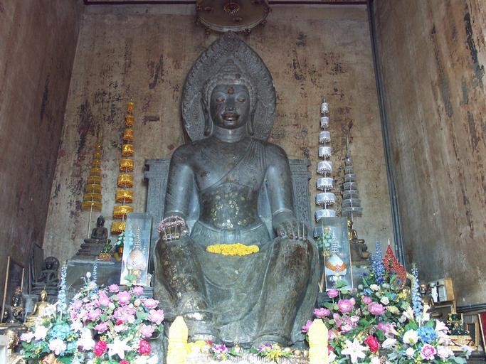 | Keywords: Ayudhaya wat na phra men 004.JPG Wat Na Phra Men วัดหน้าพระ๠มรุ Ayutthaya Thailand own มัทนา 2007-12-15 Images by Mattana-Ayutthaya Thailand Phra Khan Thavarat Wat Na Phra Men Statues of the Buddha in Ayutthaya Gold leaf in Thailand |