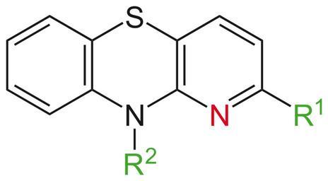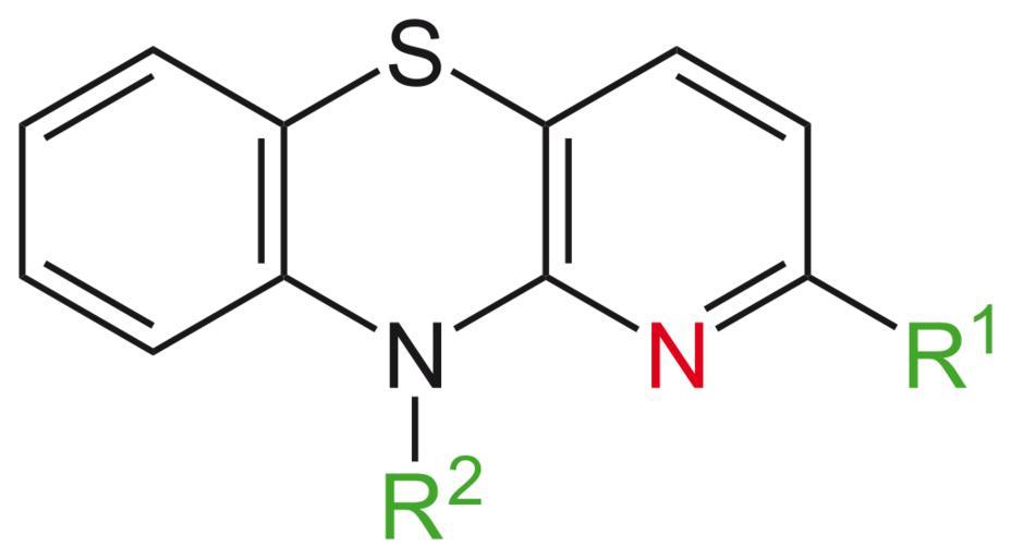 Keywords: Azaphenothiazin-Ringsystem farb.svg Struktur des Azaphenothiazin-Ringsystems farbig Structure of the azaphenothiazine ring system coloured own 2007-03-30 NEUROtiker Own work all rights released Public domain de schwarz-weiß<br />en black/white Phenothiazines |