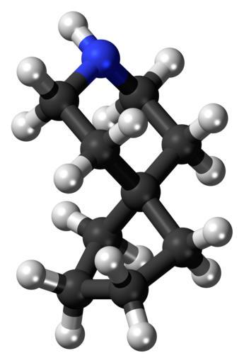 | Keywords: Azaspirodecane 3D ball.png Ball-and-stick model of the azaspirodecane molecule a spiro compound Colour code 505050 Carbon C black<br> F0F0F0 Hydrogen H white<br> 3C50FA Nitrogen N blue<br> 2011-07-03 own DS Visualizer Jynto talk Space-filling version cc-zero Images by Jynto Ball-and-stick models Piperidines Spiro compounds cyclopentane derivatives |