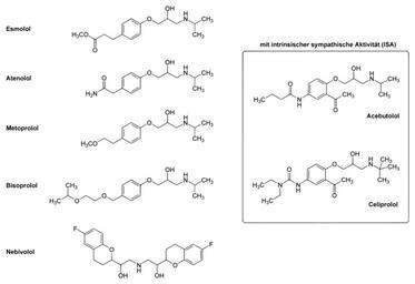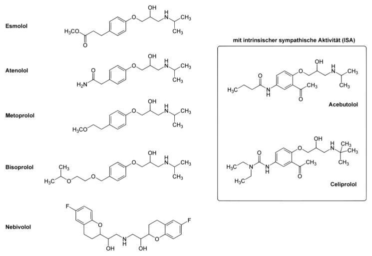 | Keywords: B1-selective beta blockers.svg  en some β1-selective beta blockers Atenolol Bisoprolol Metoprolol Nebivolol Esmolol and Acebutolol Celiprolol de Auswahl β1-selectiver Betablocker siehe oben own Yikrazuul 2008-09-13 Other fields + < Beta blockers |