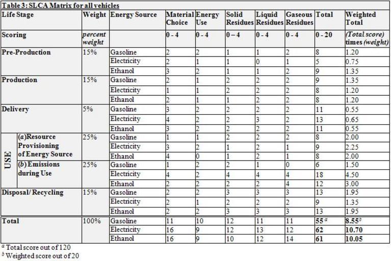 Keywords: B2.SLCA.JPG en Streamlined Life Cycle Assessment Matrix for all alternatives own B2 Team Leader Tables information Diagrams in English