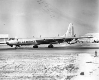 Keywords: blackandwhite monochrome vehicle aircraft airplane outdoor black and white NARA RG342-B..13 May 56, Eglin AFB, FL..Note B-47s overhead NARA RG342-B..13 May 56, Eglin AFB, FL..Note B-47s overhead
