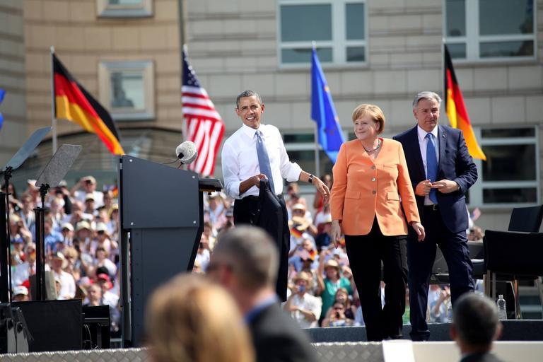 Keywords: B. Obama, A. Merkel and K. Wowereit at the Brandenburg Gate 2013.jpg en from left to right President of the United States Barack Obama Germany's Chancellor Angela Merkel and Berlin's Governing Mayor Klaus Wowereit at Obama's Germany visit in June 2013 2013-06-19 https //www facebook com/photo php fbid 521071831275949 set a 328055700577564 72069 111301905586279 type 1 theater Facebook-page of the U S Embassy Berlin U S Federal Government 52 516368 13 378620 PD-USGov DEFAULTSORT 20130619 Barack Obama in Germany in 2013 20130619 Angela Merkel and Barack Obama 20130619 Angela Merkel in 2013 20130619 Klaus Wowereit 20130619 Politicians in 2013 Obama Merkel Wowereit 19 June 2013 Obama Merkel Wowereit Photographs taken on 2013-06-19 Barack Obama in 2013 20130619000000 ImageNote 1 1539 323 138 225 2048 1365 2 Klaus Wowereit ImageNoteEnd 1 |