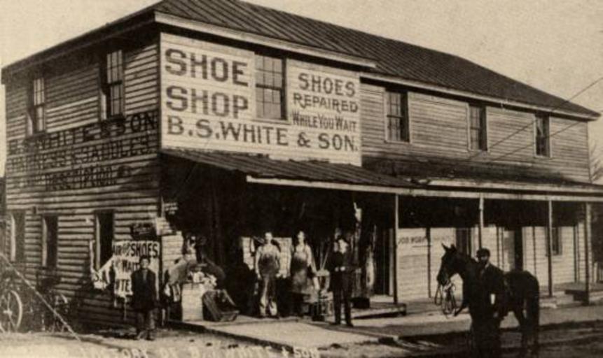 Keywords: B S White and Son Chatham.jpg en The store of Benjamin Stuart White Son a structure in downtown Chatham Virginia pictured about 1912 The establishment combined a shoe shop and harness and saddle business The building once housed a saloon prior to the occupancy by White and his son http //www victorianvilla com/sims-mitchell/local/white/bs/01/index htm Author ca 1912 Pittsylvania County Virginia PD-old |