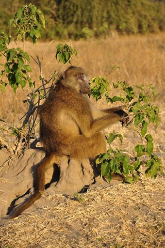 Keywords: baboon monkey sitting sitting vigilant botswana africa animal wild safari brown yellow