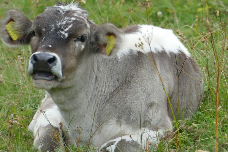 Keywords: baby cow cute relaxed meadow beef close ruminant agriculture animal creature satisfaction