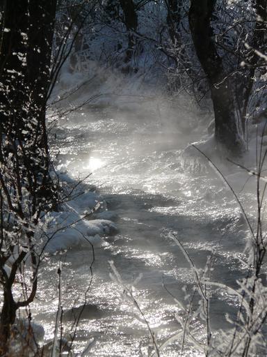 Keywords: bach water running winter hoarfrost snow deep snow wintry