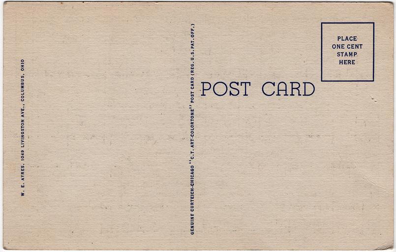 | Keywords: postcard postcards unused unknown date unknowndate date unknown dateunknown columbus columbus, ohio columbusohio ohio ohio state ohiostate ohio state university ohiostateuniversity osu colleges collage universities schools aerial aerial view aerialview campus stadium ohio state stadium ohiostatestadium divided back dividedback white border whiteborder linen c.t. art colortone ctartcolortone curt teich co. curtteichco curteich w.e. ayres weayres text writing Description on front of card: Aeroplane View of Ohio State University, Columbus, Ohio Published by: W.E. Ayres, 1049 Livingston Ave., Columbus, Ohio / Genuine Curteich-Chicago "C.T. Art-Colortone" post card Unused. Publisher Note: Curt Teich emigrated to Chicago in 1895. He had worked as a lithographer in Lobenstein, Germany. He founded the Curt Teich Company in 1898, concentrating on newspaper and magazine printing. He was an early publisher of postcards, but he didn't begin printing them himself until 1908. According to MetroPostcard.com, "As his competition dwindled, his sales expanded and his American factories would eventually turn out more postcards than any other in the United States. " The company was best known for their wide range of advertising and postcards of North America. By the 1920s, it was producing so many postcards with borders that they became recognized as a type dubbed "White Border Cards," creating an "era." Curt Teich started using offset presses in 1907, but it took a number of years before he had offset presses made to his satisfaction, and many more years for him to perfect the method. His innovations in this printing technique directly led to the production of what we now call "linens" by the early 1930s. The company aided the war effort during the second world war by also printing many military maps. Curt Teich eventually turned management of the company over to his son, but he remained active in company operations throughout its history. Curt Teich died in 1974 and the family business was sold to Regensteiner Publishers who continued to print postcards at the Chicago plant until 1978 when the rights to the company name and processes were sold to the Irish company, John Hinde Ltd. Their California subsidiary now prints postcards under the name John Hinde Curteich, Inc. Source: www.metropostcard.com/publisherst.html Description on front of card: Aeroplane View of Ohio State University, Columbus, Ohio Published by: W.E. Ayres, 1049 Livingston Ave., Columbus, Ohio / Genuine Curteich-Chicago "C.T. Art-Colortone" post card Unused. Publisher Note: Curt Teich emigrated to Chicago in 1895. He had worked as a lithographer in Lobenstein, Germany. He founded the Curt Teich Company in 1898, concentrating on newspaper and magazine printing. He was an early publisher of postcards, but he didn't begin printing them himself until 1908. According to MetroPostcard.com, "As his competition dwindled, his sales expanded and his American factories would eventually turn out more postcards than any other in the United States. " The company was best known for their wide range of advertising and postcards of North America. By the 1920s, it was producing so many postcards with borders that they became recognized as a type dubbed "White Border Cards," creating an "era." Curt Teich started using offset presses in 1907, but it took a number of years before he had offset presses made to his satisfaction, and many more years for him to perfect the method. His innovations in this printing technique directly led to the production of what we now call "linens" by the early 1930s. The company aided the war effort during the second world war by also printing many military maps. Curt Teich eventually turned management of the company over to his son, but he remained active in company operations throughout its history. Curt Teich died in 1974 and the family business was sold to Regensteiner Publishers who continued to print postcards at the Chicago plant until 1978 when the rights to the company name and processes were sold to the Irish company, John Hinde Ltd. Their California subsidiary now prints postcards under the name John Hinde Curteich, Inc. Source: www.metropostcard.com/publisherst.html |