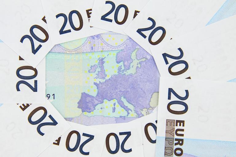 Keywords: background bank banknote bill business cash credit currency euro europe european finance money note paper twenty blue