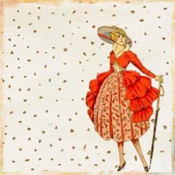 Keywords: background scrapbook paper floral vintage lady dress twenties square flower old-fashioned old page beautiful walking stick polka-dot red dress hat fashion collage art and craft model attractive elegant woman feminine classic charming romantic