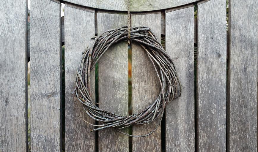 Keywords: background structural fence wreath wood wooden boards wall gate seasons