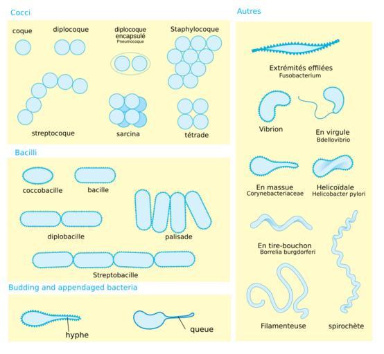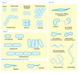 | Keywords: Bacterial morphology diagram fr.svg  Basic morphological diferences between bacteria The most often found forms and their asociations in French Formes bactériennes les plus courantes et leurs associations the image i did myself using adobe ilustrator using the information found onhttp //www sparknotes com/biology/microorganisms/monera/section1 html http //www arches uga edu/~dlg/A_wonderful_World_of_Bacteria html http //www ivytech net/twmurphy/text_pg/pro_cell htm http //helios bto ed ac uk/bto/microbes/shape htm composite http //www bacteriamuseum org/species/index shtml http //www mpg de/english/illustrationsDocumentation/documentation/pressReleases/2004/pressRelease20040123/ http //www mansfield ohio-state edu/~sabedon/biol2010 htmand the book medizinische mikrobiologie from ernst wiesmann ED Thieme 1986 2006-04-28 Mariana Ruiz Villarreal LadyofHats translation by Berru LadyofHats Other versions/Bacterial morphology diagram Bacteria diagrams SVG diagrams in French |