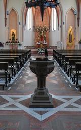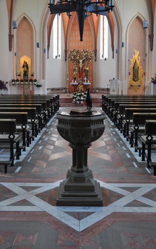 Keywords: Bad Bergzabern St Martin Blick zum Chor 2.jpg Bad Bergzabern Kath Pfarrkirche St Martin Blick zum Chor im Vordergrund der Taufstein Edith Steins own own photograph 2015-05-04 Photo Andreas Praefcke Photos by User AndreasPraefcke St -Martin-Kirche Bad Bergzabern Baptismal fonts in Rhineland-Palatinate Edith Stein |