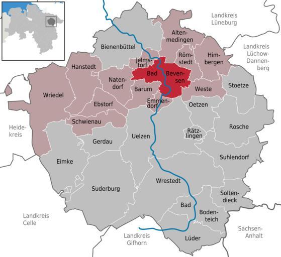 | Keywords: Bad Bevensen in UE.svg DeLocMaps Bad Bevensen Landkreis Uelzen District of Uelzen Uelzen district L'arrondissement d'Uelzen Arrondissement d'Uelzen Niedersachsen Lower Saxony Basse-Saxe TUBS/Translation Adobe Illustrator <br/> based on <br/> File Lower Saxony location map svg NordNordWest<br/> http //www geodaten niedersachsen de/master/C17415881_N17416128_L20_D0_I15258844 htm Niedersachsen Viewer<br/> http //www geomdk niedersachsen de/data/lgn/info/dgm5_lk360 pdf Koordinierungsstelle GDI-NI beim Landesbetrieb Landesvermessung und Geobasisinformation Niedersachsen DGM 5 Verfügbarkeit Landkreis/Stadt Landkreis Uelzen<br/> File Locator map UE in Lower Saxony svg TUBS 2010-10-05 Hagar66 based on work of TUBS Hagar66/licensesection Attribution TUBS/Credits Locator maps of municipalities in Landkreis Uelzen Maps of Bad Bevensen |