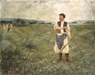 Keywords: Baditz Ember kaszával.jpg Artwork Creator Ottó Baditz unknown Oil on canvas Size cm 121 96 Private collection object history credit line accession number http //sites google com/site/magyarfestokbaditzotto/ Home http //sites google com/site/magyarfestokbaditzotto/home/baditz-otto/galeria-1 Gallery Picture information source http //www terminartors com/artworkprofile/Baditz_Otto-Man_with_Scythe terminartors com Paintings by Ottó Baditz Paintings of workers PD-old |