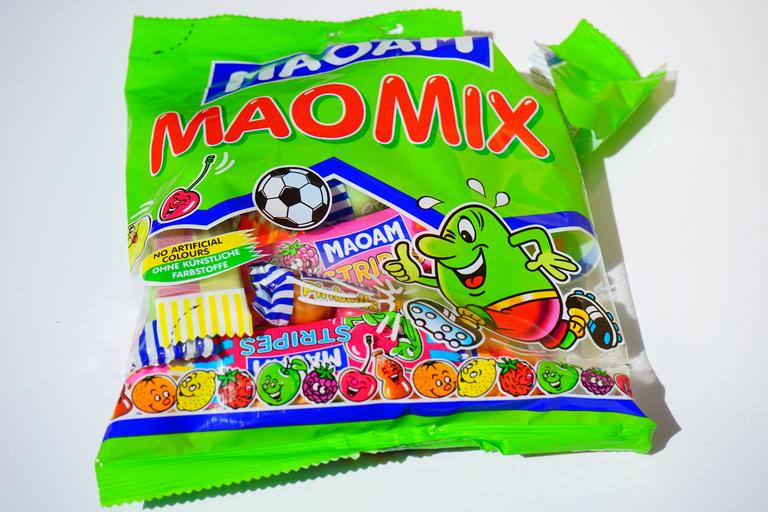 Keywords: bag candy bag maoam open touched on chewy candy maomix maoam maomix packed packaging colorful green sweetness sugar confectionery color sucking candies treat hand made sweets dental caries hardly leaving nibble sweet food calories suck unhealthy fun frivolous haribo candy