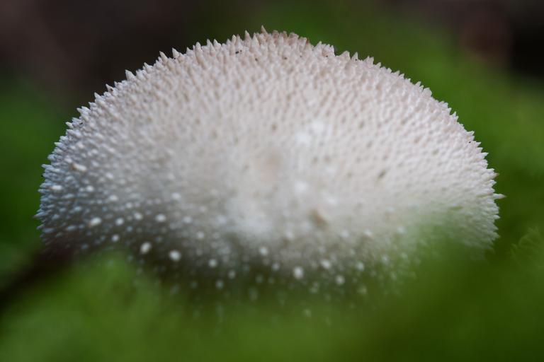Keywords: bag umbrinum pear shaped white young grainy scaly edible mushroom forest moss macro close nature flora