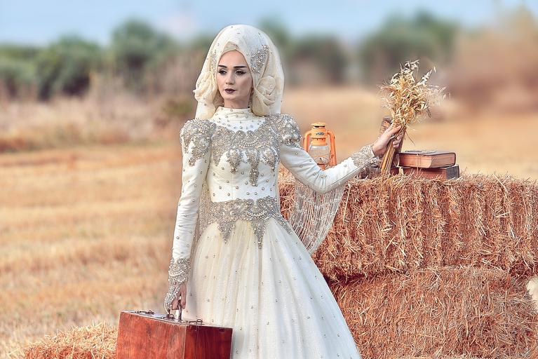 Keywords: bag women's hay field yellow book bridal wedding dress