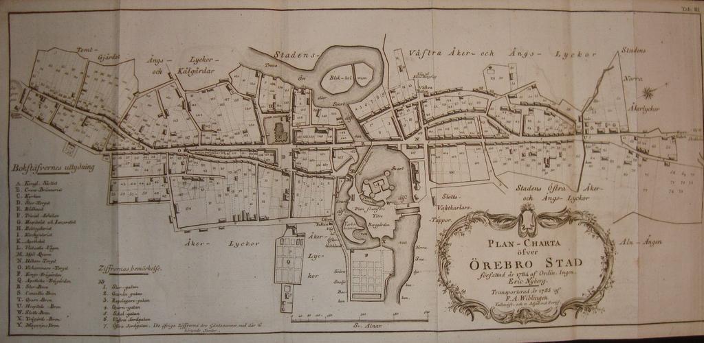 Keywords: Bagge5.JPG sv Tab 3 Plan - Charta öfver Örebro stad ur J F Bagges bok Beskrifning om upstaden Örebro own J F Bagge 1785 Johan Fredric Bagge Old maps of Sweden Örebro