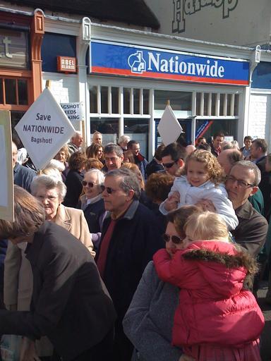 | Keywords: Bagshot Village Banking Protest 07 March 2009.JPG en An image of the protest staged by 200+ villagers against the closure of the Bagshot branch of Nationwide Building Society the village's only bank Own RedLavaLamp 2009-03-07 51 21 41 4 N 0 41 30 W source exif_heading Bagshot Demonstrations and protests in England in 2009 |