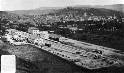 | Keywords: Bahnhof Schwaebisch Gmuend 1865.jpg Bahnhof Schwäbisch Gmünd ca 1865 Schwäbisch Gmünd railway station ca 1865 Scan from Kurt Seidel Die Remsbahn Theiss Stuttgart 1987 p 50 Credit Staatsarchiv Ludwigsburg ca 1865 author File Lorent bahnhof gmuend jpg Historic views of Schwäbisch Gmünd Bahnhof Schwäbisch Gmünd 1865 in Germany Collections of Staatsarchiv Ludwigsburg PD-old | ||||