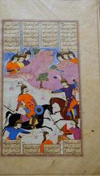 Keywords: Bahram Chubina in combat with Saveh, folio from Shanameh, signed Mu'in (Musavvir), Iran, Isfahan, c. 1666-1667 AD, watercolour, ink, and gold on paper - Aga Khan Museum - Toronto, Canada - DSC06943.jpg en Exhibit in the Aga Khan Museum - Toronto Canada This work is old enough so that it is in the public domain Photography was permitted in the museum without restriction 2015-10-06 12 41 44 own Daderot other versions PD-old-100 cc-zero Paintings in the Aga Khan Museum Bahram VI Shahnameh |