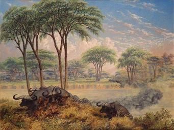 Keywords: Baines buffalo.jpg Thomas Baines 1820-1875 and Carl Lee 1871-10-18 Technique oil canvas cm 51 3 66 7 object history credit line accession number http //www argief litnet co za/cgi-bin/giga cgi cmd cause_dir_news_item news_id 30842 cause_id 1270 argief litnet co za PD-Art Thomas Baines Bisons in art 1871 paintings 1870s landscape paintings |