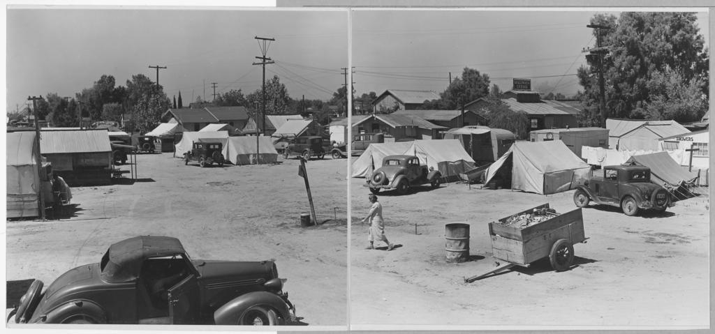 | Keywords: Bakersfield on Highway 466. Private auto camp, better than the average. There are a score of private . . . - NARA - 521795.jpg Scope and content Full caption reads as follows Bakersfield on Highway 466 Private auto camp better than the average There are a score of private auto camps strung one after the other along this highway in the eight miles between Bakersfield and Edison There were 30 agricultural labor families in this camp on and off relief Ten of these have lived here more than a year continuously They pay four dollars per month for space to put a tent or trailer Gas costs 1 50 per month and electricity an additional 1 50 per month They pay 10 per month for the rent of a tent with wooden floors wooden sides and furnished with gas and electricity There are 8 toilets 2 showers 1 washing machine Laundry tubs Practically all these families have lived in this before These camps also serve as housing for families with members continuously employed in the vicinity In this camp were two families with year-round employment General notes 521795 Local identifier 83-G-41551 Department of Agriculture Bureau of Agricultural Economics Division of Economic Information ca 1922 - ca 1953 NARA-Author Lange Dorothea 1895-1965 Photographer 1372774 <br /> Still Picture Records Section Special Media Archives Services Division NWCS-S National Archives at College Park 8601 Adelphi Road College Park MD 20740-6001 1940-04-11 Record group Record Group 83 Records of the Bureau of Agricultural Economics 1876 - 1959 Record group ARC 412 Photographic Prints Documenting Programs and Activities of the Bureau of Agricultural Economics and Predecessor Agencies compiled ca 1922 - ca 1947 documenting the period ca 1911 - ca 1947 Series ARC 521048 File unit File unit ARC Variant control numbers NAIL Control Number NWDNS-83-G-41551 Other versions <gallery> File Bakersfield_on_Highway_466 _Private_auto_camp _better_than_the_average _There_are_a_score_of_private_ _ _ _-_NARA_-_521795 tif tif File Bakersfield_on_Highway_466 _Private_auto_camp _better_than_the_average _There_are_a_score_of_private_ _ _ _-_NARA_-_521795 jpg jpg </gallery> NARA-cooperation PD-USGov U S Route 466 in California Auto camps History of Bakersfield California Dorothea Lange Jalopy cars in the Great Depression Campgrounds in the United States Tents in the United States April 1940 in the United States 1940 in California Photographs taken on 1940-04-11 1940 in road transport 1940 in transport in the United States 1940 in agriculture |