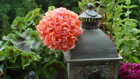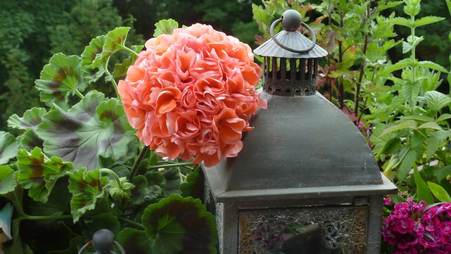 MAKE A MEME View Large Image balcony geranium flowers windlight lanterns lamps pink salmon pink green still life impression decoration decorative deco decorate in the free summer summer idyll idyll idyllic beautiful mood nature bless you beauty