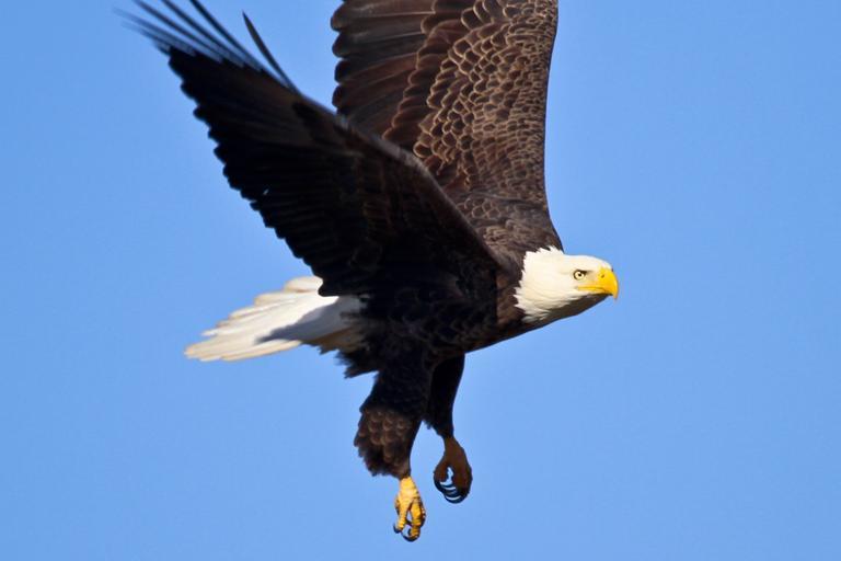 Keywords: bald eagle flying bird wildlife nature predator wild raptor flight wings sky symbol usa majestic