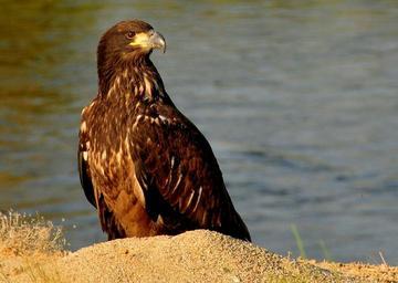 MAKE A MEME View Large Image bald eagle juvenile young looking ground standing predator immature head portrait raptor wildlife nature water shore
