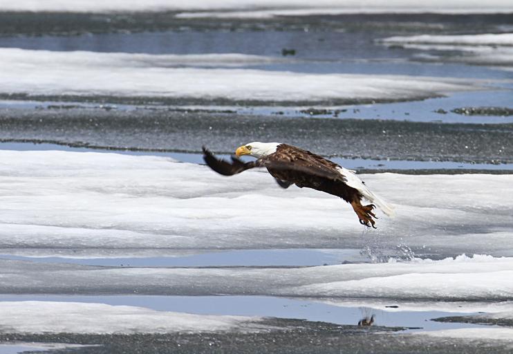 Keywords: bald eagle taking flight flying raptor predator winter snow air sky outdoors symbol ice yellowstone national park wildlife nature bird water hunting wyoming usa