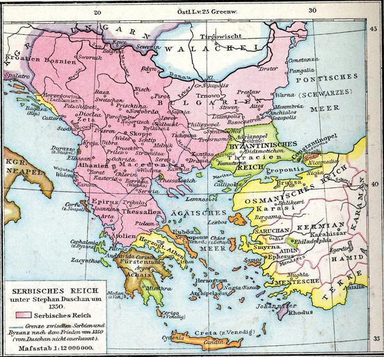 | Keywords: Balkans in 1350 according to Gustav Droysen from 19th century.jpg Stefan Dušan about 1350 Modern historiography has a stance that borders of Serbian empire were somewhat different For the view of modern historiography please see this map ovu mapu de Serbisches Reich Allgemeiner historischer Handatlas 1886 Gustav Droysen PD-old Original upload log de wikipedia Septembermorgen CommonsHelper page de wikipedia Balkan_1350 jpg 2007-10-17 15 50 Interrex 577×522× 299646 bytes <nowiki> Andere Versionen </nowiki> 2007-10-17 15 44 Interrex 577×522× 41312 bytes <nowiki> Information Allgemeiner historischer Handatlas Gustav Droysen 1886 Andere Versionen </nowiki> Old maps of the Balkans 1886 maps Old maps of Europe Old maps of Serbia Stefan Uroš IV Dušan of Serbia Maps of the Serbian Empire Maps of the history of the Republic of Macedonia in the Middle Ages Maps of the history of Republika Srpska Maps of the history of Vojvodina Maps of the history of Syrmia Maps of the history of the medieval Balkans 1350 Maps showing 14th-century history Maps from Allgemeiner Historischer Handatlas Old maps of the Byzantine Empire Maps of the history of Greece Greece in the 14th century |