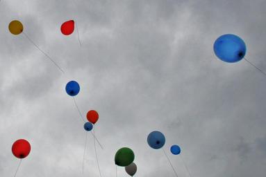 Keywords: balloons gasfilled flying colours fun red blue yellow green white sky cloudy