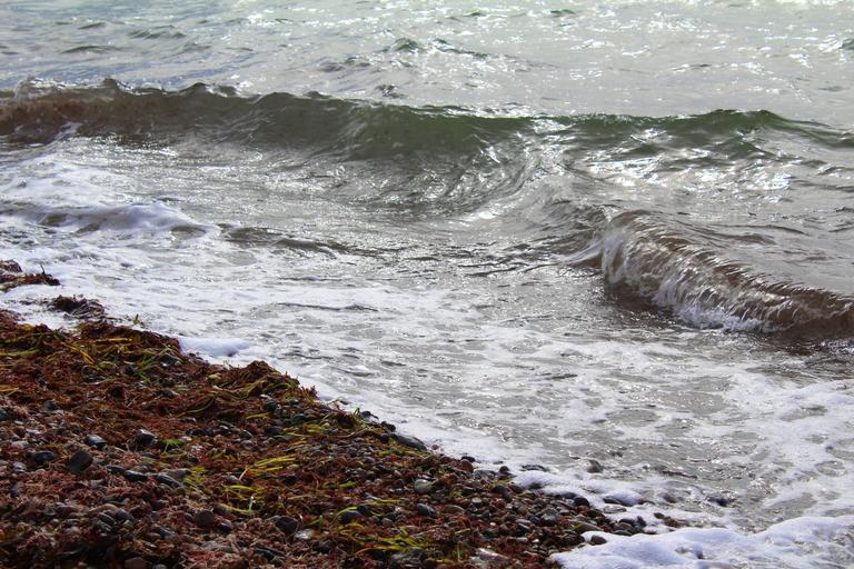 Keywords: baltic sea beach wave stones seaweed tang sea sand coast mussels back light