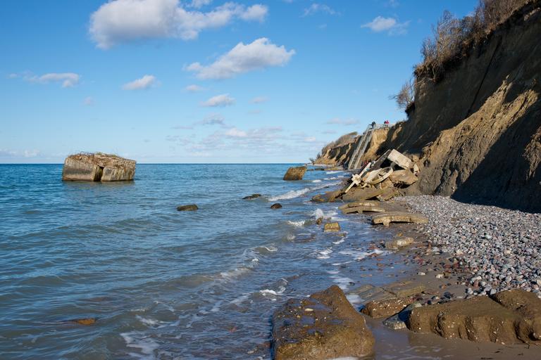 Keywords: baltic sea blue sea sky clouds beach wustrow arenshop wave risk dangerous water bunker