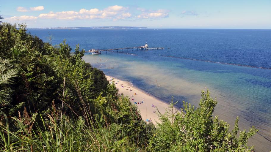 Keywords: baltic sea foresight sea horizon flowers idyll water coast bank rügen high shore trail nature landscape sellin diving bell web sea bridge