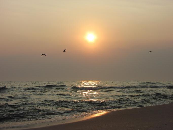 Keywords: baltic sea sunrise birds sea water beach coast sky landscape holiday sand romantic mood by the sea holidays silent