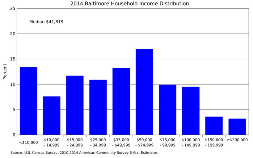 Keywords: Baltimore household income distribution.svg translate yes en Distribution of household income in Baltimore Maryland Data from http //factfinder census gov/bkmk/table/1 0/en/ACS/14_5YR/DP03/0500000US24510 US Census in 2014 inflation adjusted dollars 2016-06-01 own Delphi234 other versions cc-zero Income distribution in the United States Baltimore |