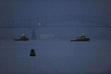 Keywords: baltimore maryland harbor bay port water fog foggy ships hospital vessel tugboat nature outside lights morning dark bridge