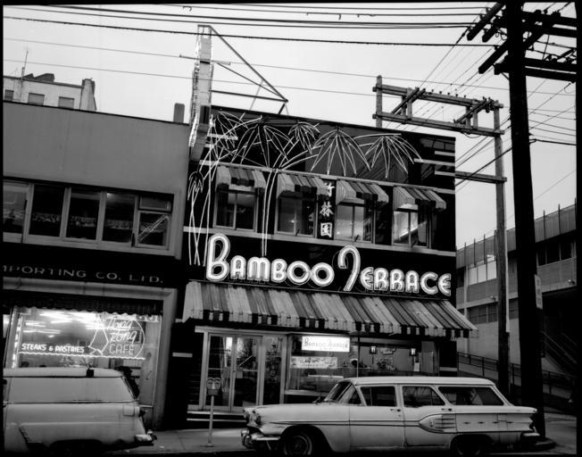 Keywords: blackandwhite monochrome outdoor photo border architecture black and white PHOTO NUMBER: 2000A DESCRIPTION: Bamboo Terrace Chinese restaurant, 155 East Pender Street, Vancouver, BC PHOTOGRAPHER: Province Newspaper DATE: 1961 SUBJECTS: Restaurants, Automobiles, Neon signs More information on our historical photograph collection: www.vpl.ca/historicalphotos PHOTO NUMBER: 2000A DESCRIPTION: Bamboo Terrace Chinese restaurant, 155 East Pender Street, Vancouver, BC PHOTOGRAPHER: Province Newspaper DATE: 1961 SUBJECTS: Restaurants, Automobiles, Neon signs More information on our historical photograph collection: www.vpl.ca/historicalphotos
