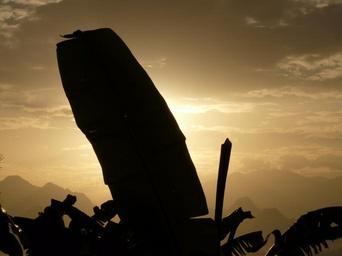 MAKE A MEME View Large Image banana leaf banana shrub back light sunset