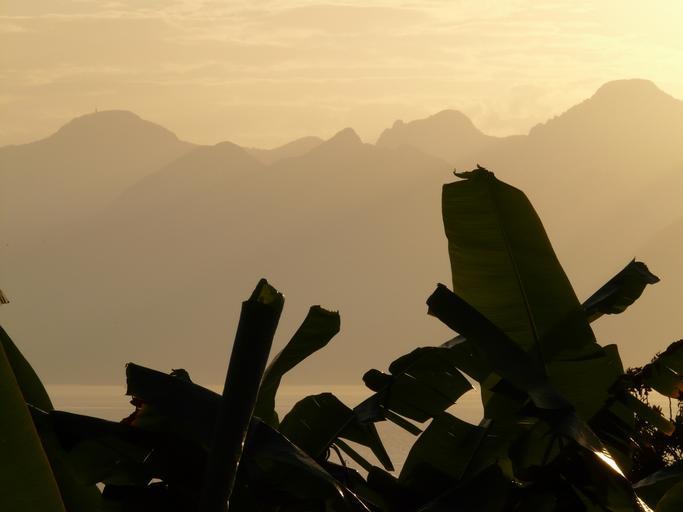 Keywords: banana trees banana leaf back light