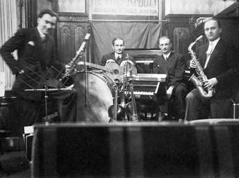 Keywords: Band, musical instrument, musician, saxophone, guitar, drum, piano, violin Fortepan 11699.jpg Check categories 2016 June 11 Tags band musical instrument musician saxophone guitar drum piano violin http //www fortepan hu/_photo/download/fortepan_19473 jpg 1936 Fortepan 11699 http //www fortepan hu/_photo/download/fortepan_19473 jpg http //www fortepan hu/ lang en img 11699 Unknown The release at fortepan hu is CC-BY-SA-3 0 As the photographer is unknown or pseudonymous and the photograph is Age 1936 01 01 years old it is considered public domain both in the country of publication Hungary and the USA where Wikimedia Commons is hosted See Fortepan HU for more information on related uploads PD-anon-70-EU PD-anon-auto-1996 1936 Hungary DEFAULTSORT Fortepan 011699 1936 photographs Images uploaded by Fæ |