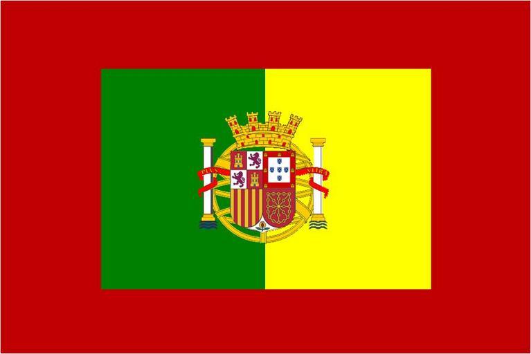 Keywords: Bandera 2.JPG es Una de las propuestas para la bandera de la Union Iberica propuesta por el movimiento Iberista Own Zelwy Fictitious flag Hybrids with the flag of Spain Hybrids with the flag of Portugal Iberian Federalism Flags with red borders