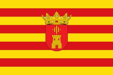 | Keywords: Bandera de Castelló de la Ribera.svg Castelló de la Ribera Ribera Alta PaÃs Valencià <br>Bandera de proporcions 2/3 Quatre pals de gules o roig en camper d ™or o groc Al centre cobrint els dos pals centrals perpendicularment als pals l ™escut municipal <br>Resolució de 28 d ™octubre de 1992 del consellerd ™Administració Pública DOGV núm 1 907 de 19 de novembre de 1992 - BOE núm 308 de 24 de desembre de 1992 own Mutxamel 1-12-2008 Flags of municipalities of the province of Valencia Castelló de la Ribera |