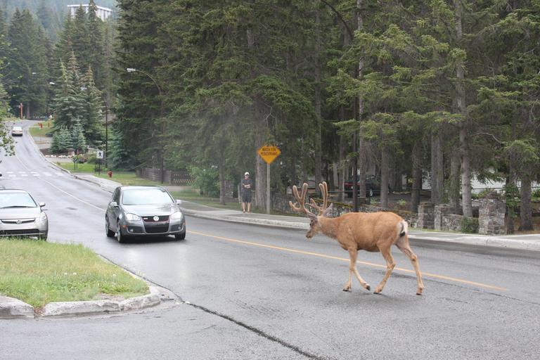 Keywords: banff town canada street destination stone park national canadian flowers travel world . intersection european traffic avenue summer outside building bike balcony season unesco shopping heritage chalet architecture
