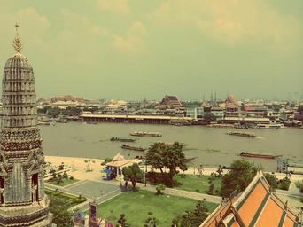 Keywords: bangkok thailand river water boats ships asia architecture buildings city