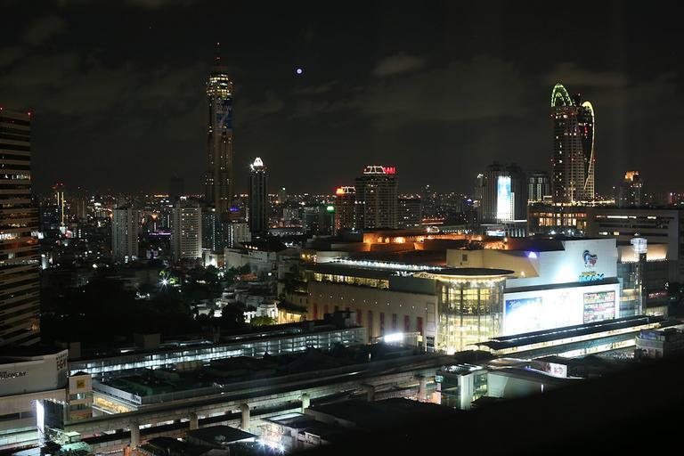 Keywords: bangkok thailand sky clouds skyscrapers buildings city cities architecture skyline cityscape urban streets vehicles traffic scenic lights lighting night evening moon